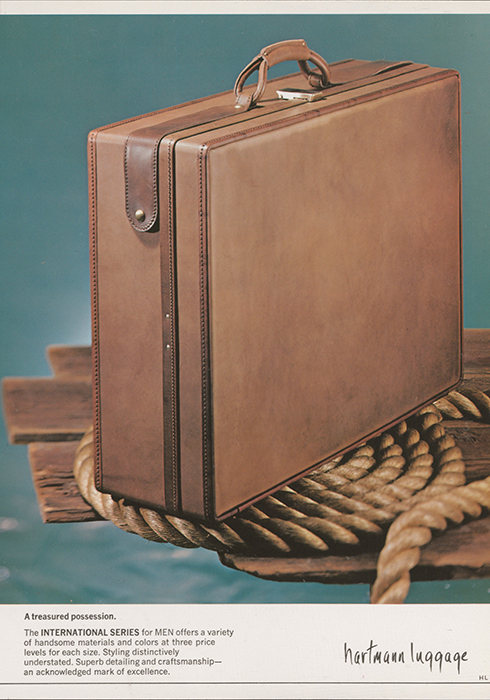 하트만의 헤리티지를 엿볼 수 있는 남성용 러기지 광고 이미지.