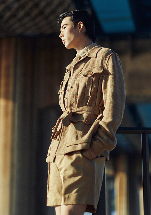 리넨 블렌드 소재의 핸드 테일러드 벨트 재킷 가격 미정, 실크 헤링본 소재의 핸드 테일러드 베스트 1백30만원대, 트윌 소재의 웨스턴 셔츠 가격 미정, 코튼 & 리넨 소재의 테일러드 쇼츠 가격 미정, 실크 소재의 스퀘어 패턴 타이 가격 미정 모두 랄프 로렌 퍼플 라벨.