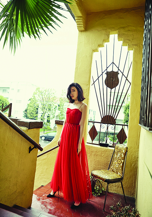 레드 컬러와 슬릿 디테일이 강렬하고 매혹적인 롱 드레스, 블랙 컬러 스틸레토 힐, 초커 모두 가격 미정 크리스챤 디올.