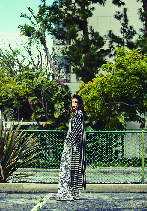 스트라이프 패턴 롱 아우터 3백90만원, 스트라이프 패턴 톱 1백20만원, 페이즐리 무늬 와이드 팬츠 1백74만원 모두 에트로.