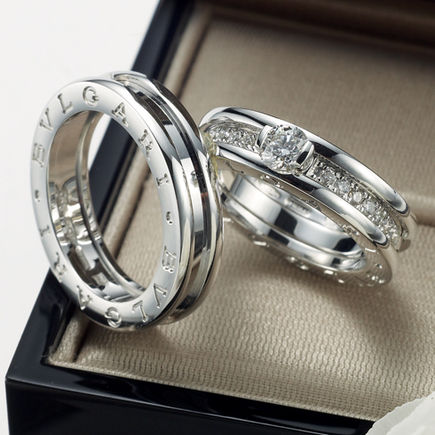 불가리 비.제로원 컬렉션 나선 모티브에 불가리 더블 로고 디자인이 돋보이는 컬렉션 링. 심플한 1밴드 링 1백만원대, 중앙에 다이아몬드를 세팅한 솔리테어 링 7백만원대.