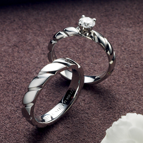 쇼메 토르사드 컬렉션 프랑스 패션과 주얼리의 중심인 방돔광장의 기둥을 플래티넘으로 표현한 컬렉션. 0.35캐럿 다이아몬드를 세팅한 솔리테어 링 7백만원대, 남성용 밴드링 3백만원대.