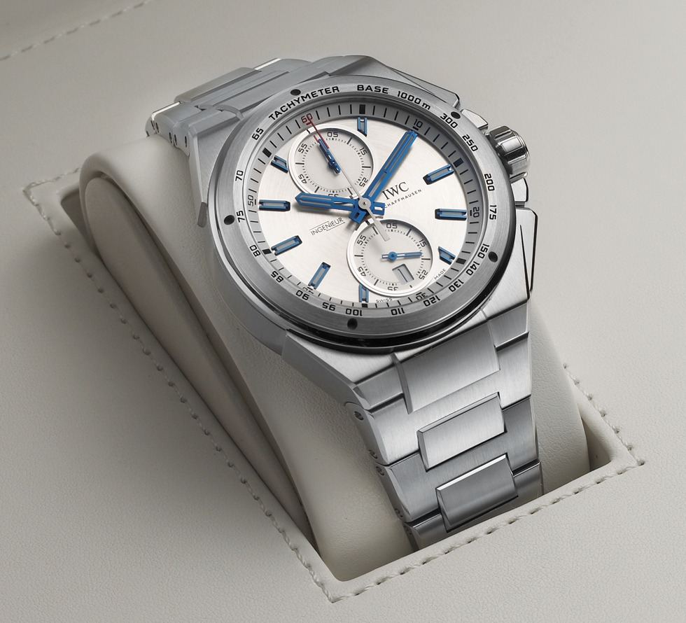 IWC 인제니어 크로노그래프 레이서 올해 메르세데스 AMG 페트로나스 포뮬러 원 팀의 공식 엔지니어링 파트너가 된 것을 기념하는 워치. 백 케이스에는 F1 머신이 새겨져 있다. 크로노그래프 베젤의 속도계를 이용해 자동차 속도를 계산할 수 있고 68시간 파워 리저브되며, 칼리버 89361을 장착했다. 1천5백만원대.