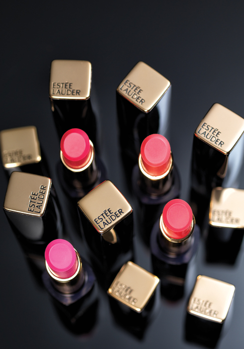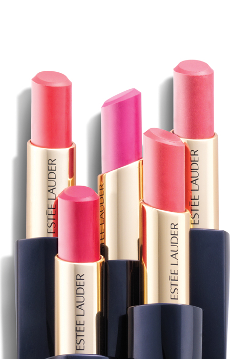 선명한 코럴색의 서리얼 썬 320호, 진달래를 연상시키는 델리키트 310호, 화사한 핑크 톤의 아리랑 핑크 480호, 밝은 체리빛의 블러섬 브라이트 250호, 우아한 핑크빛의 프리티 퍼펙트 230호 각 3.1g 3만9천원대 모두 에스티 로더.