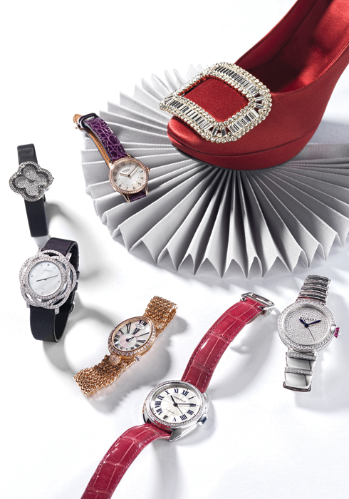 에르메스 슬림 데르메스 TPM 로즈 골드 워치 수년간의 연구 끝에 개발한 우아하고 심플한 타이포그래피 인덱스가 돋보이는 25mm의 스몰 다이얼 여성 워치. 작고 슬림한 로즈 골드 베젤에 총 0.29캐럿의 다이아몬드를 세팅해 화려함을 더했으며, 쿼츠 무브먼트를 탑재해 가격대 또한 한결 가벼워졌다. 1천6백만원대. 반클리프 아펠 알함브라 파베 스몰 사이즈 워치 사랑, 행운, 건강 등을 뜻하며 반클리프 아펠을 상징하는 모티브인 알함브라가 시계로 탄생했다. 눈부실 만큼 빼곡하게 다이아몬드를 파베 세팅한 다이얼은 자세히 살펴보면 네 가지 각기 다른 사이즈의 다이아몬드를 세팅해 반클리프 아펠만의 독보적인 세공 기술을 엿볼 수 있다. 3천9백만원대. 샤넬 화인 주얼리 까멜리아 브로데 워치 마드무아젤 샤넬이 가장 사랑했던 동백꽃을 형상화한 주얼리 워치. 18K 화이트 골드에 총 2.36캐럿에 달하는 1백94개의 브릴리언트 컷 다이아몬드를 섬세하게 세팅한 디자인이 단연 돋보인다. 4천7백만원대. 브레게 레인 드 네이플 미니 워치 브레게 여성 워치 컬렉션을 대표하는 레인 드 네이플의 미니 버전 워치. 기존보다 사이즈가 작은 에그 셰이프 케이스가 여성미를 극대화한다. 그물망처럼 짜인 정교한 체인 형태의 로즈 골드 브레이슬릿이 입체감을 주는 동시에 손목에 완벽하게 밀착되는 것이 특징. 베젤과 다이얼 플랜지, 러그에 총 1.32캐럿의 다이아몬드 1백39개를 세팅했다. 7천3백만원대. 까르띠에 끌레 드 까르띠에 주얼리 위치 커플 워치로도 사랑받고 있는 워치 컬렉션. 까르띠에에서 선보이는 새로운 아이코닉 워치인 만큼 다양한 크기, 컬러, 소재로 선보여 선택의 폭이 넓다는 점에서 매력적이다. 프랑스어로 ‘열쇠’를 뜻하는 이름처럼 열쇠를 연상케 하는 크라운이 눈에 띄며, 베젤에 다이아몬드를 세팅하고 화사한 핑크 악어가죽 스트랩을 매치해 여성스러움을 부각했다. 3천만원대. 불가리 루체아 다이아몬드 워치 빛과 시간의 영원한 관계에서 영감을 받은 여성 워치. 모던하고 클래식한 디자인으로, 이는 마치 고대 로마의 해시계를 연상케 한다. 독특한 형태의 브레이슬릿이 돋보이며, 베젤 라인과 브레이슬릿, 다이얼 전체에 브릴리언트 컷 다이아몬드를 세팅해 화려함을 극대화했다. 6천만원대.