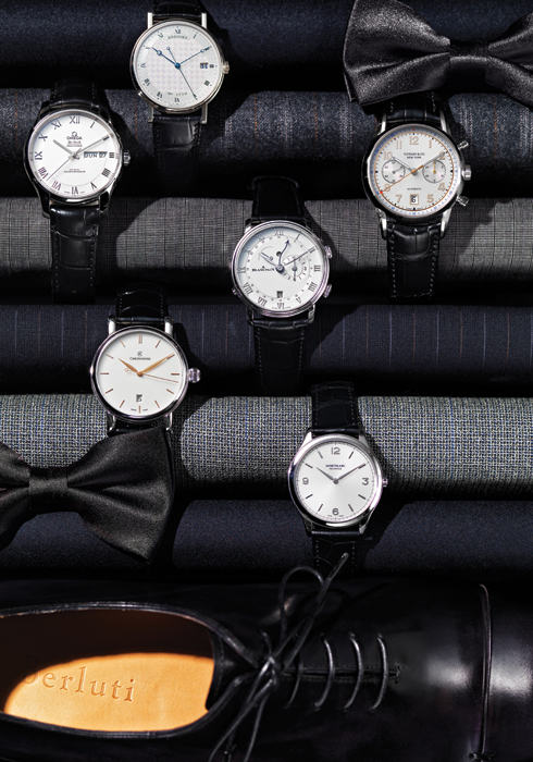 오메가 드 빌 아워비전 코-액시얼 마스터 크로노미터 애뉴얼 캘린더 메타스(METAS) 인증을 받은 오메가 코-액시얼 마스터 크로노미터 칼리버 8903을 탑재해 가장 진보된 기술력을 보여준다. 3시 방향에 애뉴얼 캘린더와 날짜창이 위치하며, 심플한 로마숫자 인덱스로 클래식 워치의 정석을 보여준다. 1천1백만원대. 브레게 클래식 5177 화이트 골드 수많은 클래식 워치 중 워치 마니아들의 위시 리스트에 오르는 클래식 5177 모델. 한눈에도 브레게 시계임을 알 수 있는 달 모티브의 블루 스틸 핸즈와 클래식한 로마숫자 인덱스, 날짜창을 배치했으며, 실리콘 레버와 이스케이프먼트를 장착한 셀프와인딩 무브먼트 777을 탑재한 것이 특징이다. 2천9백만원대. 티파니 CT60 크로노그래프 워치 1945년 루스벨트 대통령이 선물로 받은 티파니 골드 워치에서 영감을 받아 탄생했다. 깔끔한 선과 단순한 미학이 돋보이는 디자인, 스위스 장인이 완성한 최고 퀄리티의 부품을 결합한 유니크하고 세련된 남성 워치다. 8백만원대. 블랑팡 빌레레 GMT 알람 워치 우아한 디자인으로 큰 사랑을 받아온 블랑팡의 베스트셀러 컬렉션. 올해 새롭게 GMT 알람 기능을 더해 더욱 파워풀해진 면모로 남성들의 마음을 사로잡을 것. 더블 타임 존, 알람 파워 리저브 표시 기능과 함께 6시 방향에는 날짜창이 자리 잡고 있으며, 오묘한 빛깔의 플링케 오팔린 다이얼과 뱀의 곡선을 연상케 하는 스네이크 블루 핸즈가 돋보인다. 2천9백만원대. 몽블랑 헤리티지 크로노메트리 울트라 슬림 워치 아주 얇고 가벼운 울트라 슬림 케이스 워치. 38mm의 다이얼 사이즈에, 두께는 5.8mm로 확연히 얇은 두께를 자랑한다. 스테인리스 스틸 케이스에 실버 다이얼, 그 위에 같은 컬러의 인덱스, 핸즈로 깔끔하고 스마트한 분위기를 풍긴다. 2백64만원. 크로노스위스 시리우스 오토매틱 스틸 워치 심플할수록 멋스러움이 빛을 발한다는 것을 여실히 증명하는 시계. 시간을 나타내는 필수적인 요소만을 표시해 가독성을 높였고, 초박형 케이스와 짧아진 러그를 적용해 손목에 착 감기는 착용감 역시 훌륭하다. 5백60만원.