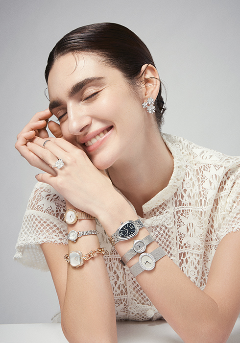 섬세한 디테일이 여성스러움을 부각하는 테크니컬 코튼 레이스 소재의 피티드 재킷 가격 미정 디올. (위부터 시계 방향으로) 아름다움과 순수함, 충만함의 상징인 연꽃을 모티브로 탄생한 로터스 컬렉션으로 18K 화이트 골드 소재에 다이아몬드를 파베 세팅한 이어링 5천50만원대 반클리프 아펠. 스테인리스 스틸 소재의 뱀 머리 모양 케이스에 뱀 비늘에서 영감받은 듯 디테일하고 섬세한 문양의 브레이슬릿으로 아이코닉한 감성을 선사하는 세르펜티 세두토리 워치 7백10만원 불가리. 새틴 패턴에서 영감받은 격자무늬 장식이 돋보이는 워치로 스틸 케이스에 베젤을 총 0.32캐럿의 40개 라운드 컷 다이아몬드로 장식한 라 미니 디 마이 디올 스틸 다이아몬드 세트 가격 미정 디올 타임피스. 정교한 골드 세공과 독특한 오벌 다이얼이 매력적인 익스트림리 레이디 워치. 18K 화이트 골드 케이스와 브레이슬릿을 더하고 약 1.46캐럿의 24개 브릴리언트 컷 다이아몬드를 베젤에 세팅했다. 9천4백만원 피아제. 뉴욕의 볼드한 에너지와 파워풀한 건축물에서 영감받은 컬렉션 워치로 18K 로즈 골드 소재에 화이트 MOP 다이얼과 총 1캐럿의 2백91개 라운드 브릴리언트 컷 다이아몬드를 파베 세팅해 완성했다. 4천만원대 티파니. 케이스 지름 15mm의 작은 사이즈에 화이트 골드와 44개의 다이아몬드로 이뤄져 브레이슬릿 같은 여성스러운 감성을 전달하는 포부르 워치 가격 미정 에르메스 워치. 아이코닉한 핑크 골드 비즈로 빚은 뻬를리 컬렉션 워치로 머더오브펄 다이얼이 우아함을 완성한다. 4천2백30만원대 반클리프 아펠. 총 10.55캐럿의 에메랄드 컷 다이아몬드가 임팩트를 주는 다이아몬드 프로미스 링 가격 미정 그라프. 플래티넘 소재 밴드 중앙에는 다이아몬드를, 안쪽에는 루비 장식을 더한 프레드 포 러브 웨딩 밴드 2백만원 프레드.