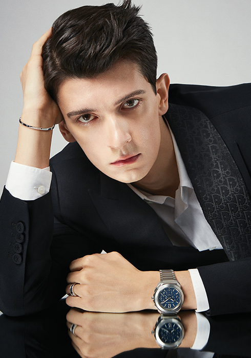 톤온톤 디올 오블리크 자카드 장식의 더블 숄 칼라가 돋보이는 언밸런스 스타일의 울 트윌 재킷, 화이트 코튼 포플린 셔츠 모두 가격 미정 디올 맨. (위부터 차례대로) 클래식하고 심플한 디자인이 남성적인 매력을 배가하는 화이트 골드 소재의 비제로원 브레이슬릿 6백25만원 불가리. 회전하는 릴 모티브를 더한 아이코닉한 디자인의 화이트 골드 소재에 다이아몬드로 포인트를 준 벨 에포크 릴 링 가격 미정 다미아니. 지름 42mm의 팔각형 케이스에 블루 클루 드 파리 다이얼이 돋보이는 옥토 로마 크로노그래프 워치 1천2백90만원 불가리.