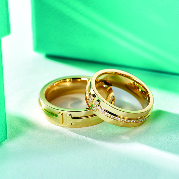 (첫 번째 줄 사진 왼쪽부터) 타사키 피아노 컬렉션 피아노 건반처럼 디자인한 커플 링. 남성 밴드 링 1백50만원대, 여성 밴드 링 3백70만원대. 타사키 라벨로 컬렉션 꽃잎을 연상시키는 부드러운 곡선 디자인의 커플 링. 남성 밴드 링 1백20만원대, 여성 다이아몬드 링 3천만원대. (두 번째 줄 왼쪽 사진) 티파니 T 투 링 컬렉션 브랜드 이니셜을 모티브로 만든 티파니 T 컬렉션의 후속 모델로, 하나로 연결된 T 라인이 두 사람의 영원한 사랑을 의미한다. 옐로 골드 링 2백30만원대, 다이아몬드 세팅 옐로 골드 링 1천만원대.