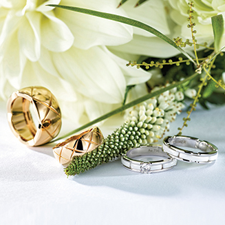 (첫 번째 줄 오른쪽 사진 왼쪽부터) 샤넬 화인 주얼리 코코 크러쉬 컬렉션 샤넬만의 감성으로 심플하게 재해석한 퀼팅 패턴인 ‘마뜰라쎄(Matelasse)’를 표현한 커플 링. 남성 밴드 링 3백60만원대, 여성 밴드 2백60만원대. 샤넬 화인 주얼리 울트라 컬렉션 세라믹 소재로 제작해 도회적인 분위기를 물씬 풍긴다. 다이아몬드 세팅 여성 밴드 링 5백만원대, 남성 밴드 링 1백80만원대.