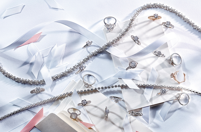 (두 줄의 네크리스 사이, 왼쪽부터 시계 방향으로) 리본의 유연한 곡선을 연상시키는 소용돌이 형태의 밴드에 멜레 다이아몬드를 세팅한 바운드 솔리테어 링 1.5캐럿 기준 6천7백만원대 타사키. 6개의 프롱이 라운드 브릴리언트 컷 다이아몬드를 밴드 위로 완전히 들어 올려 광채를 더욱 극대화한 티파니 세팅 링 1.6캐럿 기준 6천만원대, 모던하고 유니크한 스퀘어 셰이프의 다이아몬드를 세팅한 티파니 에메랄드 컷 솔리스트 링 0.59캐럿 1천8백만원대 모두 티파니. 메인 다이아몬드를 중심으로 밴드가 점점 좁아지는 디자인으로 스톤을 더욱 아름답게 강조한 보네르 링 1캐럿 기준 3천2백만원대, 핑크 골드 원형 비즈로 이루어진 밴드가 유니크한 뻬를리 솔리테어 링 1캐럿기준 3천8백만원대, 플래티넘 밴드 양쪽에 라운드 다이아몬드를 파베 세팅하고, 중앙에 투명한 다이아몬드 솔리테어 스톤을 세팅한 로망스 링 0.4캐럿 기준 9백만원대 모두 반클리프 아펠. 1503년 베네치아에서 결혼을 약속하는 다이아몬드 웨딩 링이 최초로 시작된 데서 모티브를 얻은 베네치아 컬렉션으로, 메인 다이아몬드가 더욱 돋보이도록 양옆 밴드를 좁힌 형태의 토르첼로 링 1캐럿 기준 2천5백만원대, 다이아몬드를 파베 세팅한 2개의 브리지가 중앙에 위치한 메인 다이아몬드를 품은 디자인이 인상적인 인콘트로 다모레 링 1캐럿 기준 4천5백만원대 모두 불가리. 꽃잎을 연상시키는 유연하면서도 부드러운 곡선의 밴드가 특징인 라벨로 솔리테어 링 1캐럿 기준 3천만원대 타사키. 메탈을 감추고 주위에 다이아몬드로 수놓은 마이크로 파베 세팅 기술을 적용해 볼록하게 솟은 화려한 자태의 센터 스톤을 강조한 까르띠에 데스티네 솔리테어 링 2.16 캐럿 기준 가격 미정 까르띠에. (하단 네크리스) 75개의 브릴리언트 컷 다이아몬드가 각도에 따라 눈부신 광채를 발하는 에센셜 라인 네크리스 13.5캐럿 기준 가격 미정 까르띠에. (네크리스 아래 왼쪽부터) 두 줄로 비드 세팅한 라운드 다이아몬드가 쿠션 브릴리언트 컷의 센터 스톤을 감싼 티파니 솔리스트 링 1.10캐럿 기준 3천1백만원대 티파니. 동백꽃의 우아한 꽃잎을 표현한 뉴 까멜리아 인게이지먼트 링 0.77캐럿 기준 2천5백만원대 샤넬 화인 주얼리. 메인 스톤 양옆으로 플래티넘 밴드에 다이아몬드를 파베 세팅한 해피 브라이드 컬렉션 솔리테어 링 1캐럿 기준 3천4백만원대 쇼파드. 상위 1%의 다이아몬드 커팅 기술을 보유하고 있는 타사키의 다이아몬드를 우아하게 돋보일 수 있도록 세팅한 피아체레 솔리테어 링 2캐럿 기준 4천4백만원대 타사키. 브랜드 고유의 퀼트 패턴을 적용한 마뜰라쎄 솔리테어 링 0.51캐럿 기준 1천만원대 샤넬 화인 주얼리. 4개의 돋음 팔메트와 와이어 보디로 이루어진 마운트가 돋보이는 솔리테어 1895 링. 1895년 루이 까르띠에가 디자인한 것으로, 우아하고 클래식한 무드를 자아낸다. 2.01캐럿 기준 가격 미정 까르띠에. 독보적인 우아함을 자랑하는 오벌 셰이프 다이아몬드 링 1.05캐럿 기준 3천1백만원대 티파니.