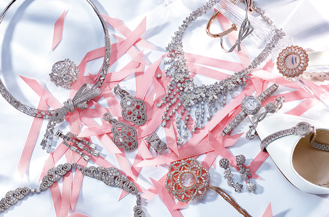 (왼쪽 페이지 왼쪽 위부터 시계 반대 방향으로) 풍성한 수국 부케를 표현하기 위해 다이아몬드를 입체적으로 세팅, 볼륨감 있는 디자인으로 완성한 와일드 부케 레디언트 링 가격 미정 타사키. 브랜드의 상징적인 리본 모양을 모티브로 디자인한 루반 네크리스 가격 미정 샤넬 화인 주얼리. 에메랄드 컷 다이아몬드와 스퀘어 컷 다이아몬드, 브릴리언트 컷 다이아몬드, 그리고 바게트 컷 다이아몬드를 세팅해 우아하면서 세련된 멋을 풍기는 폰타네 디 로마 드롭 이어링 가격 미정, 기하학적인 원형 모티브를 체인처럼 연결한 디자인에 14개의 라운드 브릴리언트 컷 다이아몬드와 무려 18.22캐럿에 달하는 다이아몬드를 파베 세팅한 다이아몬드 컬렉션 볼드 네크리스 가격 미정, 고대의 기하학 패턴과 부채 모티브가 포인트인 디바스 드림 링 2천1백만원대 모두 불가리. 오페라 가르니에에서 영감을 받은 볼드한 원형 모티브의 드롭형 디자인이 돋보이는 파리 누벨바그 이어링. 화이트 골드에 다이아몬드를 풀 파베 세팅했다. 3.37캐럿 기준 8천4백만원대 까르띠에. (오른쪽 페이지 샴페인 잔 위부터 시계 방향으로) 행운을 불러온다는 포제션 링의 ‘회전’ 콘셉트를 브레이슬릿 버전으로 선보인 포제션 오픈 뱅글 브레이슬릿 18K 핑크 골드 1천2백만원대 피아제. 우아하고 부드럽게 흐르는 리본 모티브가 돋보이는 화이트 골드 소재 보우 커프 1천1백만원대 티파니. 목선과 쇄골을 따라 마치 다이아몬드 꽃잎이 떨어지듯 입체적이고 황홀하게 다이아몬드를 세팅한 카리사 컬렉션 멀티 다이아몬드 네크리스. 총 68.87캐럿에 달하는 다양한 커팅의 다이아몬드를 사용했다. 가격 미정 그라프. 활짝 피어난 꽃봉오리의 모습과 닮은, 높이 뛰어오른 발레리나의 튀튀 스커트를 표현하기 위해 정교한 꽃잎 모티브로 완성한 프레셔스 쇼파드 컬렉션 하이 주얼리 워치 5.5캐럿 기준 가격 미정 쇼파드. 베젤과 다이얼은 물론 브레이슬릿까지 다이아몬드로 빼곡하게 장식한 베이비 그라프 다이아몬드 워치 21.44캐럿 기준 가격 미정 그라프. 브랜드의 상징적인 이브 피아제 로즈가 만개한 모습을 표현한 로즈 브레이슬릿 1.32캐럿 기준 2천1백만원대 피아제. 다이얼부터 스트랩까지 다이아몬드로 화려하게 수놓은, 하이 주얼리 버전의 포부르 워치 2.46캐럿 기준 가격 미정 에르메스. 들판에 자유롭게 핀 야생화에서 영감을 받아 탄생시킨 입체적인 꽃송이가 돋보이는 폴리 데 프레 컬렉션 이어 클립 가격 미정 반클리프 아펠. 플라워 모티브 중앙에 5개의 무빙 다이아몬드가 자유롭게 움직이는 것이 특징인 해피 다이아몬드 네크리스 8천6백만원대 쇼파드. |