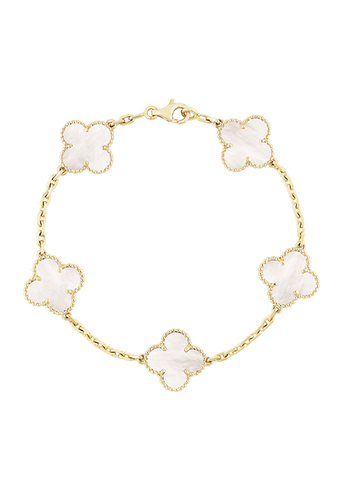 주얼리는 우리 몸에 착용함과 동시에 디자인적인 아름다움뿐 아니라 상징적으로도 많은 의미를 준다. 그래서 ‘행운’, ‘행복’, ‘사랑’ 등과 같은 의미를 담은 주얼리를 선택할수록 가치를 더한다. 1968년 행운을 상징하는 네 잎 클로버에서 영감을 받아 탄생한 반클리프 아펠의 알함브라 주얼리 컬렉션이 많은 사랑을 받는 이유다. 특히 소매가 짧아지는 날씨에 무려 5개의 네 잎 클로버 모티브가 들어간 빈티지 알함브라 브레이슬릿은 룩에 포인트를 주며 고급스러움을 더한다. 옐로 골드에 화이트 머더오브펄 모티브로 어느 룩에나 잘 어울리며, 네 잎 클로버 가장자리에 자리한 섬세한 골드 비즈 장식이 우아하고 여성스러움을 배가한다.