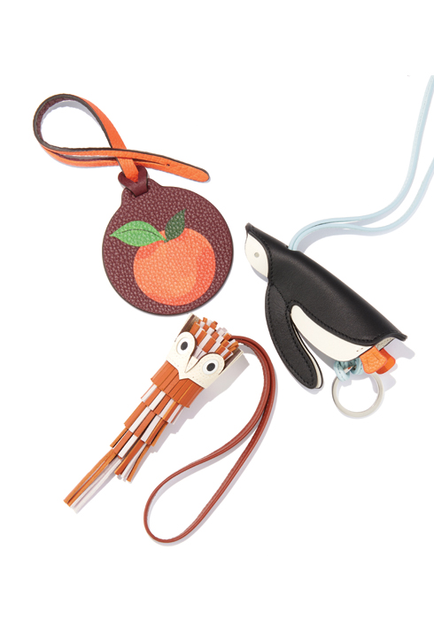 부드러운 트리옹 브러시 소재에 풍요와 번영의 의미를 담은 2024 CNY 컬렉션 마카롱 참 28만원 모이나. 문의 02-2254-4150. 자연과 동심의 의미를 지닌 로에베X수나 후지타 컬래버레이션 제품으로 송아지가죽 소재의 펭귄 키링 참 79만원 로에베. 문의 02-3479-1785. 지혜의 상징이자 수호신을 의미하는 부엉이를 모티브로 한 양가죽 소재 포인트 백 액세서리 87만원 에르메스. 문의 02-542-6622