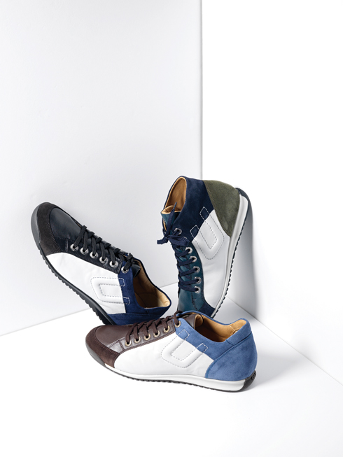 멋스러운 캐주얼 수트를 원하는 남자들을 위해 디테일에 강한 이탤리언 핸드메이드 슈즈 브랜드, 파치오티의 캐주얼 라인 4US에서 수트에 포인트가 되는 스니커즈 라인을 선보인다.