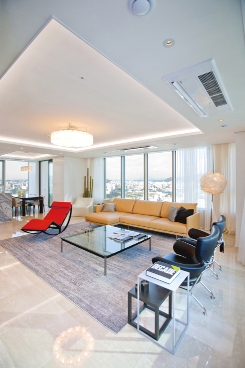 화제의 주인공은 갤러리아 포레의 전용 면적 371m2 짜리 펜트하우스. 최초 분양가가 51억원이었던 이 펜트하우스가 10억원의 프리미엄이 붙은 채 매매가 이뤄졌다는 이야기가 나오면서 부유층을 중심으로 입소문이 돌고 있다고 한다. 갤러리아 포레 공인 관계자에 따르면 “계약금도 일반적인 10%가 아닌 20%로 진행됐다”며 “계약금만 약 12억원으로 강남의 웬만한 99~132m2 대 아파트에 상당하는 가격에 거래가 성사됐다”라고 전했다. 지난해 서울 뚝섬에 그 모습을 드러낸 45층 주상복합 갤러리아 포레는 233~377m2로 구성돼 있는데, 입주를 개시한 지 1년도 채 안 됐지만 전·월세 대기 수요가 있을 정로로 인기를 끌고 있다. 입주 초기에는 경기 불황의 여파로 분양가에 판매하려던 급매물들이 있었지만, 지금은 299~331m2 를 중심으로 가격이 올라 쉽게 매물을 찾기가 힘들다고.