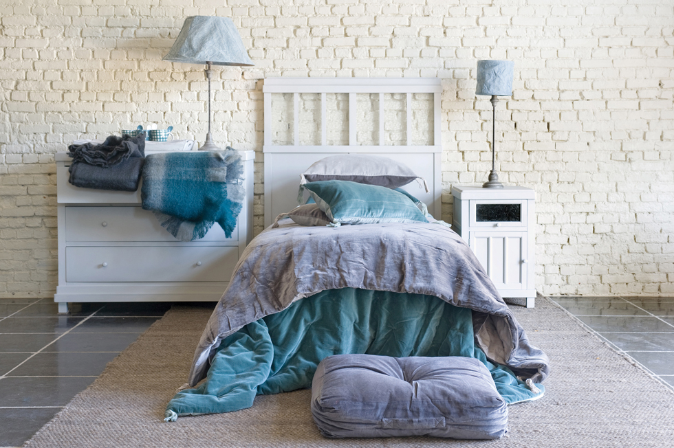 이와 함께 회색이 가미된 분위기 있는 흐릿한 청색이나 청록색, 푸크시아 꽃을 연상케 하는 소프트 핑크, 연녹색 등 자연을 닮은 순수한 색감이 잔잔한 흰색의 물결 속에 떠다니는 꽃송이나 나뭇잎처럼 심심함을 덜어주는 듯했다. 자연스러운 질감이 그대로 느껴지는 원목 침대, 새하얀 소파에 청회색 침대보와 쿠션의 조화를 생각하면 될 듯하다. 침구, 쿠션, 식기 등을 아우르는 홈 인테리어 컬렉션 브랜드인 벨기에의 포막스(Pomax)는 “이번 시즌의 핵심 색상은 그린-블루(greenblue)”라며 “그냥 평범한 청색이 아니라 물 빠진 청색·회색·녹색 등이 감도는, 여러 가지 농담을 머금은 색조”라고 설명했다.