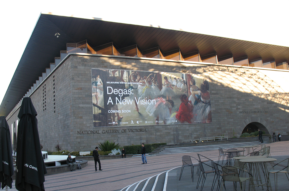 멜버른은 호주 남동부 빅토리아(Victoria) 주의 주도로, 호주에서 극장과 갤러리, 박물관, 공연장 등이 가장 많은 문화 예술의 도시다. 인구당 예술가 비율이 뉴욕과 샌프란시스코보다 더 높은 예술가의 도시이기도 하다. 멜버른 아트 여행은 플린더스 스트리트 역(Flinders Street Station)에서 시작된다. 이곳은 1854년 세운 최초의 기차역으로 멜버른의 랜드마크이자 교통 중심지로 여전히 군림하고 있다. 고풍스러운 기차역 바로 맞은편에는 현대적 디자인의 페더레이션 광장(Federation Square)이 펼쳐진다. 페더레이션 광장은 일종의 복합 문화 공간으로, 매일 크고 작은 공연이 열리며, 스포츠 경기가 있는 날에는 시민들이 모여 전광판을 보며 응원을 펼치곤 한다. 광장 뒤편에는 호주영상박물관(ACMI), 내셔널 디자인 센터(National Design Centre), 국영방송국 SBS 등이 위치한다. 호주영상박물관은 서울시립미술관에서도 열린 <드림웍스 애니메이션 특별전>을 처음 기획한 곳으로, 최근에는 영화감독 마틴 스코세이지(Martin Scorsese) 회고전이 열렸다. 부근에는 발레리나의 하얀 튀튀를 철골로 형상화한 아트 센터(The Art Centre)와 국립미술관(NGV)도 있다. 아트 센터의 건축 디자인은 특히 환상적인 야경을 선사하는데, 마치 세계적으로 명성이 높은 호주 발레단과 호주 발레 학교의 고고한 위상을 상징하는 듯하다. 국립미술관은 빅토리아 주립 갤러리 부설 이언 포터 센터 NGV 호주(The Ian Potter Centre: NGV Australia)와 NGV 인터내셔널(NGV International) 두 곳으로 이루어져 있다. NGV 호주는 원주민인 애버리지니(Aborigine) 예술의 독창성을 알리고 있고, NGV 인터내셔널에서는 호주뿐 아니라 세계 각국의 현대미술 전시가 열린다. 근래에는 내년에 서거 1백 주년을 맞는 미술가 에드가 드가(Edgar De Gas) 전시가 열렸다.