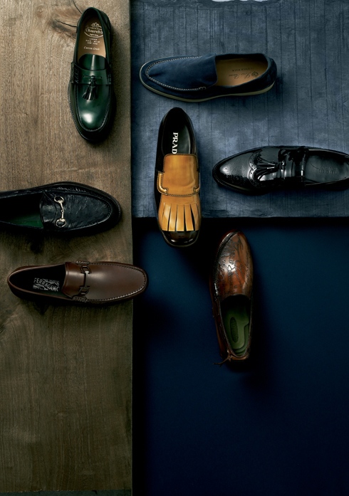 브랜드명이 고유명사가 되었을 만큼 유명한 디자인이다. 1966년 탄생한 디자인으로 말의 재갈 모양을 본뜬 메탈 스트랩이 상징이다. 미국에서는 여전히 비즈니스맨들의 필수 아이템으로 통한다. 평범한 가죽 소재 제품을 갖고 있다면 이그조틱 레더 소재를 한 가지 더 구매해도 좋다. 고급스러운 가오리 가죽 소재에 구찌의 심벌이 빛나는 딥 브라운 컬러 로퍼. 2백만원대 구찌. 문의 02-3444-3169
