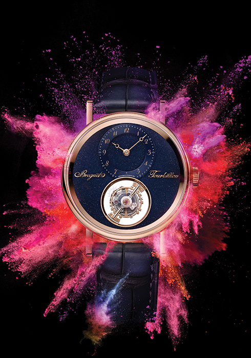 브레게 하우스 창립 250주년 기념으로 제작한 네 번째 워치. 독보적인 노하우를 보유한 투르비용 분야의 업적을 기리기 위해 매뉴팩처 최초 플라잉 트루비용을 선보였다. 하단 브리지 하나로만 지지되는 이 투르비용을 위해 컴플리케이션을 미스터리 세팅한 것 역시 놀라운 부분. 천문학에 대한 경의를 표하는 딥 블루 컬러의 아벤추린 글라스 공예로 완성한 그랑 푀 에나멜 다이얼은 눈부신 밤하늘을 연상시킨다. 문의 02-9605-3571 |