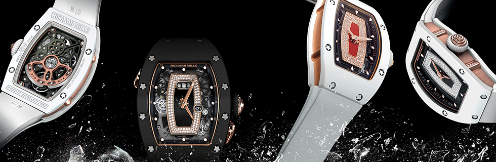 스포츠 워치 세계에서 리차드 밀의 이 엄청난 업적은 세계적인 테니스 선수 라파엘 나달이 이번 2016년 리우 올림픽에서도 리차드 밀을 착용하고 경기를 치름으로써 더 크게 화제가 되었다. 테니스의 황제 라파엘 나달에 이어 아름다운 2명의 골프 여제 역시 실제 경기에서 리차드 밀의 워치를 착용했기에 보다 완벽한 시계를 위한 리차드 밀의 열정이 어느 지점에까지 다다랐는지 확인할 수 있다. 충격을 완화하는 정교한 무브먼트와 항공 분야, 혹은 우주선에 사용한다는 견고한 합금 소재가 격렬한 움직임 속에서도 워치를 살아 숨 쉬게 한다. 리차드 밀이 주로 사용하는 시계의 소재를 나열해보면 카본 나노파이버, 리탈, 고강도 티타늄 등 기존 시계 개발 분야에서 쉽게 적용하지 않는 한 차원 높은 소재들이라는 것을 알 수 있다. 그렇기에 스포츠 경기에 직접 착용하는 워치의 전체, 혹은 일부분에 리차드 밀만의 고품질 세라믹 소재를 사용했다는 것도 인상적이다. 리차드 밀에서 가장 널리 활용하는 소재인 그레이드 5 강도의 티타늄처럼 견고하고 가벼운 세라믹 역시 세계 최고의 스포츠 선수들을 위한 시계에 다양한 요소로 적용된다. 뿐만 아니라 하이엔드 워치에 세라믹을 도입하는 시도는 가벼움과 강렬함, 아름다움을 함께 선사했다. 그리고 드라마틱한 비주얼은 여성 워치에 더 극적인 효과를 부여하기에, 이 시계들의 아름다움은 더욱 빛이 난다.