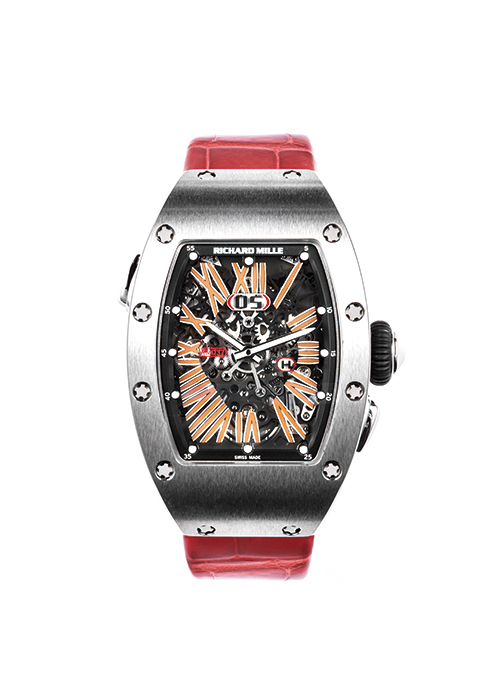 리차드 밀의 여성용 타임피스 시리즈는 수공업에 기반한 고급 시계의 세계에 센세이션을 불러일으켰다. 2014년 남성용 타임피스인 RM 037 모델을 재해석해 첫선을 보인 레이디스 워치는 지금까지도 가장 많은 사랑을 받는 모델이다. 경주용 자동차, 우주선 등 아주 세밀하고 정교한 기술이 필요한 분야에 관심이 많은 창업자의 취향에 따라, 리차드 밀에서는 단 하나의 시계를 만들더라도 더 까다로운 작업을 수행한다. CRMA1 칼리버를 장착한 이 모델은 시와 분, 그리고 인상적인 오버사이즈 날짜 표시 기능이 매우 그래픽적인 느낌을 주는 디자인으로, 50시간 파워 리저브, 그레이드 5의 티타늄 소재 베이스 플레이트와 브리지를 담고 있다. 10시 방향에 있는 푸시 버튼을 누르는 것만으로도 날짜를 간편하게 조정할 수 있고, 4시 방향에 있는 푸시 버튼을 한 번 누르면 마치 자동차의 변속기처럼 와인딩, 시간 설정, 혹은 중립 위치를 선택할 수 있다. 레드 골드, 화이트 골드, 티타늄 케이스와 화이트 세라믹, 블랙 세라믹 중 선택할 수 있는데, 사진 속 제품은 강렬한 느낌을 주는 블랙과 화이트 세라믹 케이스의 RM 037 레이디스 워치 모델이다.