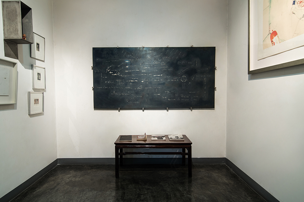 8 아트 스페이스에서 제일 큰 공간 내부. 벽 위에 보이는 검은 드로잉은 에땅 위하소가 직접 그린 벽화, ‘Expanded Dreams’(2011), 260X900cm. 이 밖에 왼쪽부터 헤리 도노(Heri Dono)의 ‘Maes-tro Affandi’(2009), 초록색 회화 작품은 에땅 위하르소 작품 ‘Rumah diatas Batu(Blue sunflower)’(2006), 맨 오른쪽은 에코 누그로호(Eko Nugroho)의 ‘I am the Truth’(2005).