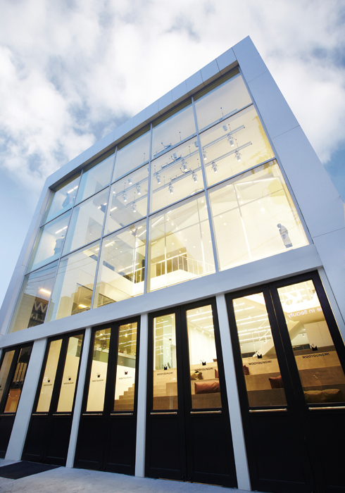 패션과 라이프스타일을 공유하는 남자들만을 위한 공간이 필요하다고 느낀 우영미는 파리 맨즈 컬렉션에 진출한 지 10여 년째가 되던 해, 압구정동에 플래그십 스토어 ‘맨메이드’를 열었다. 오픈 당시 우영미의 토털 라인을 비롯해 향초, 화장품, 문구류 등 라이프스타일을 아우르는 셀렉트 숍으로 구성했는데, 지난달에는 이 셀렉트 숍 대신 5층에 솔리드 옴므가 안착하며 완벽한 맨메이드 우영미를 완성했다. 새롭게 단장한 솔리드 옴므는 천연 대리석과 볼드한 스테인리스 선반, 행어, 집기 등을 모던하게 믹스한 인테리어로 변화를 주었다. 백화점에 입점한 솔리드 옴므 매장까지 순차적으로 새 옷을 입을 계획. 플래그십 스토어는 문을 열자마자 2층으로 올라가는 계단이 이어지는데, 통창으로 들어오는 빛 덕분에 마음까지 시원해진다. 한쪽에는 카페를 마련해두어 커피와 디저트를 즐길 수 있게 했고, 아티스트의 작품을 시즌별로 전시하기도 한다. 수익을 내기도 바쁜 이 넓은 공간을 문화에 관련된 이벤트를 위해 할애하는 걸 보니 쇼핑 이상의 경험을 원하는 남자들을 위한 복합 문화 공간으로 부족함이 없다는 생각이 들었다. 3층과 4층에는 우영미의 컬렉션 피스와 커머셜 라인을 비롯해 남자 액세서리의 기본인 슈즈와 가방, 가죽 제품, 맞춤 수트까지 구비되어 있다. 옷을 진열한 방식이 마치 액자에 걸린 작품과 같아 갤러리에 방문한 듯한 착각을 불러일으킨다. 국내 남성복 시장에서 성공을 거둔 솔리드 옴므와 파리 맨즈 컬렉션에서 자신만의 영역을 구축한 우영미는 안팎으로 나뉘어 있는 두 브랜드를 트위스트하는 과정을 진행 중이다. 솔리드 옴므는 더 넓은 해외시장으로, 우영미 컬렉션은 국내에서 보다 대중적으로 다가가도록 공략할 계획이다. 묵묵히 한길만 걸어온 우영미가 견고하게 쌓아 올린 이 두 브랜드가 전 세계 남자들에게 더 많은 관심과 사랑을 받을 수 있으리라 확신한다. 세월의 흐름과는 무관한 잘 만든 옷이 지닌 힘은 누구에게나 통하기 마련이니까. 문의 02-515-8897