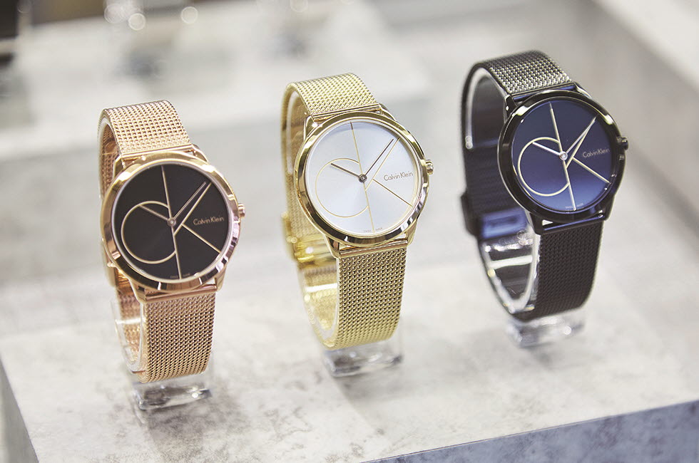 듀얼리티(duality)라는 테마를 반영한 남성 워치인 ‘부스트(Boost)’는 대비되는 다이얼의 컬러 조합이 인상적인 컬렉션이다. 두 가지 컬러 블록 덕분에 2단으로 보이는 다이얼은 스포티하면서도 모던하고 심플한 인덱스가 뛰어난 가독성을 선사한다. 실제 판매에서 압도적인 인기를 얻고 있는 ‘미니멀(Minimal)’ 컬렉션은 브랜드를 대표하는 컬렉션이자 오래도록 사랑받아온 베스트셀러 모델이다. 마치 햇살이 비치는 듯 방사형으로 뻗어나가는 선 브러시 실버 다이얼에 큰 사이즈의 ck 로고가 인상적이다. 바젤월드 부스에서도 한눈에 시선을 사로잡은 모델로, 남성과 여성 모두에게 추천할 수 있는 유니섹스 컬렉션이다. 심플한 다이얼에 오직 브랜드 로고만으로 강렬함을 더한 데서 지극히 캘빈클라인다운 디자인 감각을 느낄 수 있다. 여기에 최근 각광받고 있는 메시 밴드로 미니멀한 감성에 개성을 더했다. 26mm에 불과한 미니 사이즈의 ‘엔들레스(Endless)’ 컬렉션은 캘빈클라인에서는 이례적으로 핑크, 페트롤 그린 등 다양한 컬러의 레더 스트랩을 더해 유쾌하게 완성했다. 2017년 컬렉션의 주제인 ‘youth’를 콘셉트로 해 학생과 사회 초년생에게 어울리는 제품이다.