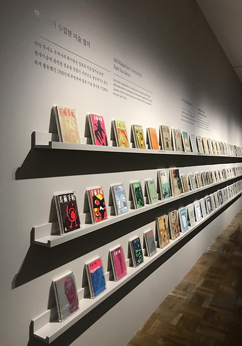 3 박수근이 수집한 미술 잡지(1전시실). 그는 전업 작가로 왕성하게 활동한 1950년대 후반부터 많은 미술 잡지를 사들이며 해외 동향을 접했다.