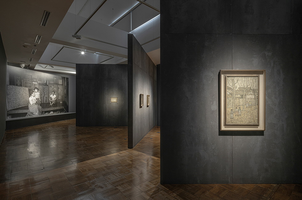 8 ‘창신동 사람들’을 주제로 한 3부의 전시 풍경. 박수근의 그림과 함께 1950~60년대 시대상을 담은 한영수의 사진 작업을 볼 수 있다.