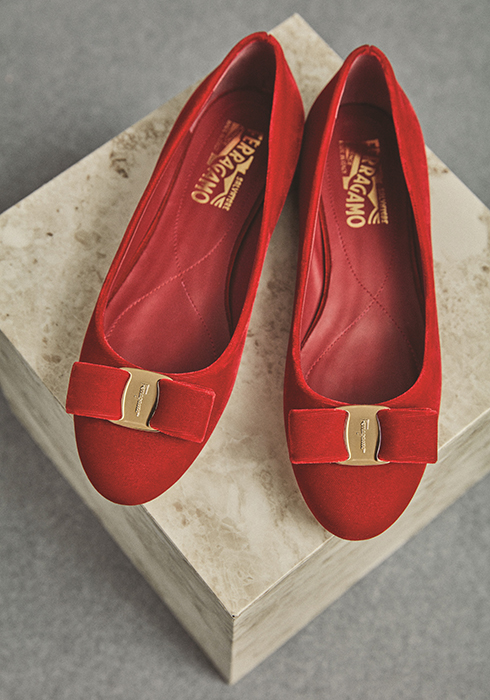 그로그랭 리본 장식의 레드 바라 슈즈 69만원 살바토레 페라가모.