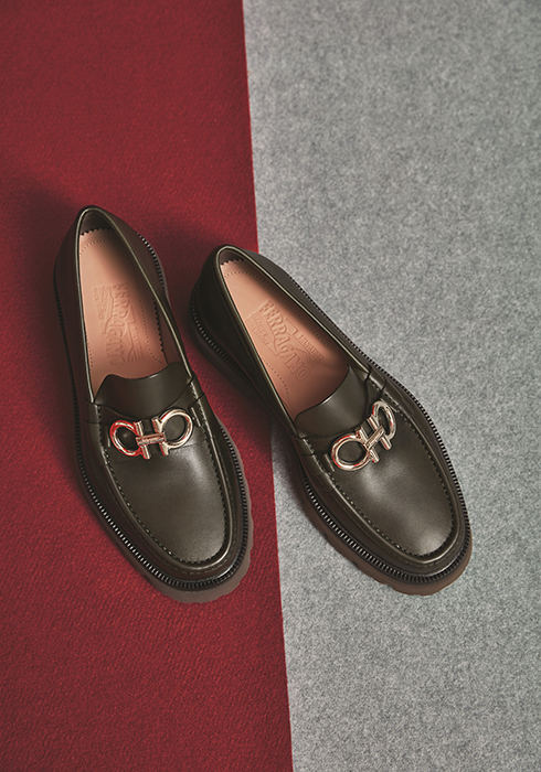 간치니 로고 장식이 돋보이는 다크 그린 컬러 로퍼 85만원 살바토레 페라가모.
