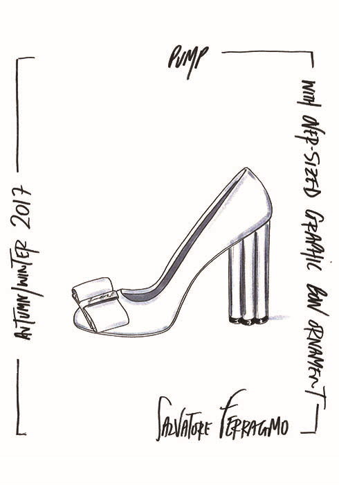 4 2017년 페라가모의 여성 컬렉션 총괄 디렉터 폴 앤드루가 아카이브 모델을 재해석해 완성한 플라워 힐 스케치.