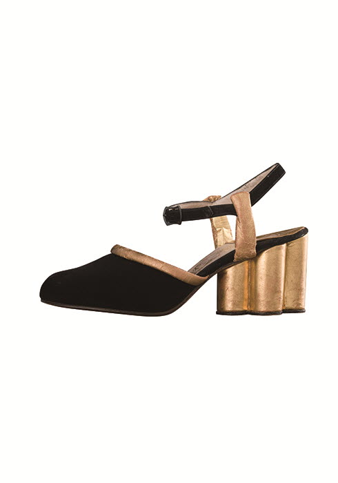 1 (의자 위 왼쪽부터) 블랙 & 골드 리본 장식의 플라워 하이힐 펌프스 8.5cm 79만원, 리본 모티브가 포인트인 우아한 보르도 컬러의 플라워 하이힐 펌프스 5.5cm 79만원 모두 살바토레 페라가모.