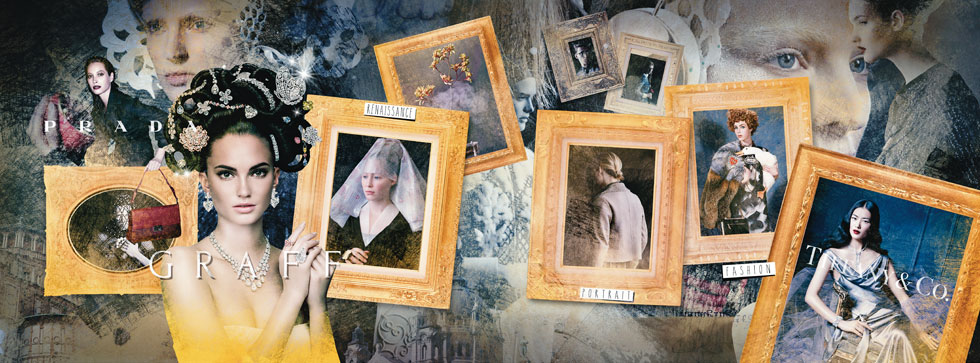 “과거의 초상화는 사진으로 대체되었으며, 오늘날 패션모델의 이상적인 자세와 구성은 전통적인 회화 거장들의 작품에서 차용한 것”이라는 앤 홀랜더(Anne Hollander)의 표현은 이번 시즌 패션 광고 사진 트렌드와 딱 들어맞는다. 발렌티노(Valentino)와 알렉산더 맥퀸(Alexander McQueen)의 2013 F/W 시즌 광고는 르네상스 초상화 속 여인이 현대의 옷을 입고 환생한 듯 보인다. 알렉산더 맥퀸의 광고는 복식사에서 모티브를 가져온 의상을 입은 모델을 꼿꼿한 자세로 세워 촬영했다. 고요하고 정적이지만 주먹을 쥔 모델의 자세에서 여전사의 결연함까지 느껴진다. 반면, 발렌티노의 광고는 사진임에도 회화적 표현에 중점을 두었다. 검은색 배경 앞에 선 모델은 르네상스 회화 속 여인처럼 과장되지 않은 정숙한 자세를 취하고 있으며, 레오나르도 다빈치의 회화를 연상시키는 은유적인 우아한 손동작을 통해 시선의 흐름을 조절한다. 또 르네상스 정물화적 표현을 혼용해, 하이힐이나 핸드백을 예술 작품처럼 보여준다. 입체감을 주기 위해 명암 대조 기법을 사용한 르네상스 회화처럼 모델의 신체 일부가 검은 어둠 속에 묻혀 있다. 오리를 들고 있는 랑방(Lanvin)의 광고 사진은 레오나르도 다빈치가 그린 백조를 모사한 르네상스 회화 ‘레다’를 떠올리게 한다. 그 밖에 ‘파란색 상자’를 강조해온 티파니(Tiffany) 역시 지난 가을에는 우아한 한 편의 클래식한 초상화와 같은 광고를 선보였다. 샤넬(Chanel)과 랑방의 이번 리조트 컬렉션 광고 또한 클래식한 초상화를 연상시킨다.