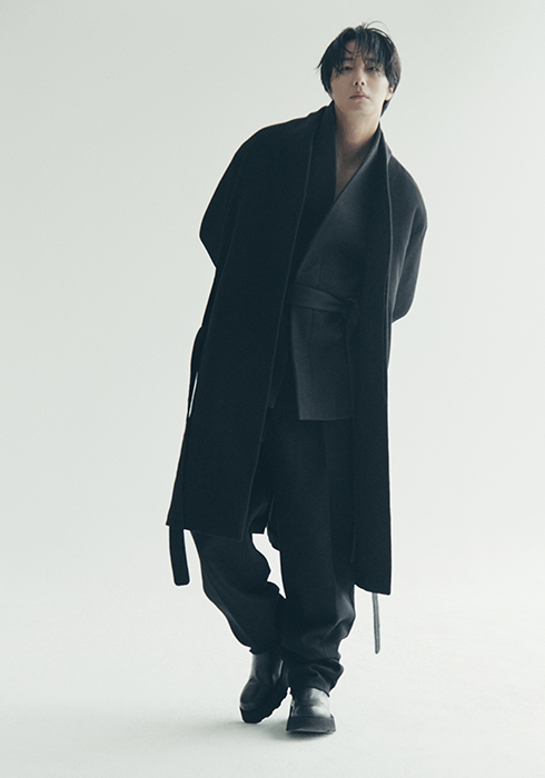 벨티드 디테일 블랙 재킷과 코트 모두 가격 미정, 밴딩 웨이스트 테일러드 팬츠 2백84만5천원 모두 에르메네질도 제냐. 청키 솔 블랙 앵클부츠 가격 미정 엠포리오 아르마니.
