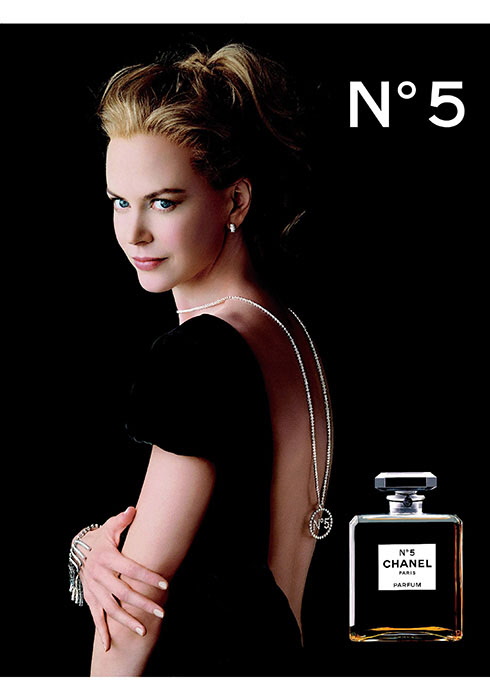 1980년대에는 유명 영화감독이기도 한 리들리 스콧 감독이 오픈 스페이스와 페어드 다운 기법을 활용한 광고에 육감적인 미를 더해 또 다른 매력의 N°5 광고를 만들어냈다. 1994년에는 장-폴 구드 감독이 모핑이라는 새로운 테크닉을 사용했으며 2년 후 제라르 코르비요는 바다에서 펼쳐지는 오케스트라를 떠올리게 하는 놀라운 광고를 선보였다. 그 후 거장 뤽 베송 감독 역시 빨간 모자 아가씨를 새롭게 해석해 자신만의 시각으로 꿈같은 세계를 재창조해 N°5 정신을 새롭게 부각한 영상을 제작했다. 이렇듯 N°5 광고는 그 시대의 거장과 다양한 예술가와 협업을 하는 데 거리낌이 없었으며 그를 통해 기존과는 다른 유니크하고 독자적인 이미지를 만들고자 끊임없이 노력해왔다. 2004년 그 대미를 장식할 모델이 등장한다. 바로 최고의 여배우 니콜 키드먼이 N°5의 화신이 되어 광고에 등장한 것. 자끄 엘루는 니콜 키드먼의 우아함과 아름다운 매력이 한껏 발산된 영화 <물랑 루즈>를 연출한 바즈 루어만 감독에게 N°5의 새로운 광고를 의뢰했다. 기존에는 볼 수 없었던 탁월한 연출로 N°5의 이미지를 완전히 새로운 경지에 올려놓았다.