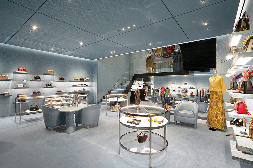 명품 패션의 수도라 할 수 있는 청담사거리에서 갤러리아백화점 방면으로 발걸음을 옮기다 보면 메탈 커튼으로 뒤덮인 인상적인 건축물과 마주친다. 컬러풀한 쇼윈도와 파격적인 패션 아이템, 선명한 스카이 블루 컬러의 다마스크 패턴이 가득한 이곳은 지금 가장 인상적인 행보로 패션을 이끌고 있는 미우미우의 새로운 부티크다. 패션에 조금이라도 관심이 있는 사람이라면 ‘프라다’라는 브랜드를 익히 알고 있을 것이다. 벌써 10년도 전에 <악마는 프라다를 입는다>라는 영화로 이미 유명했던 이 이탈리아 명품 브랜드는 더 세계적이고 대중적인 인지도를 얻게 되었다. 그렇다면 미우미우(MIU MIU)는? 1993년 프라다의 중심이자 상징 그 자체인 미우치아 프라다가 보다 자유롭고 독창적인 스타일을 선보이기 위해 론칭한 브랜드로, 패션계에서 독보적인 위치를 차지하고 있다. 초기에는 밀라노를 시작으로 뉴욕과 런던에서 컬렉션을 선보였고, 2006년 S/S 시즌부터 파리에서 컬렉션을 선보이며 독자적인 정체성을 확립했다. 클래식함과 상반된 요소의 매치에서 느껴지는 매력으로 가득한 미우미우는 도시와 전원, 남성성과 여성성, 쿠튀르와 스트리트, 과거와 현재, 추함과 아름다움, 고급스러움과 값싼 것과 같은 우리의 삶 전반에 스며든 모순적이고 대립적인 요소를 자양분 삼아 성장하고 있다. 하이 패션과 로 패션의 경계를 허물고, 아방가르드하고 위트 있는 패션을 선보이는 이 독특한 브랜드가 국내 소비자에게 뜨거운 반응을 얻었기에 미우미우 플래그십 스토어가 서울, 그리고 패션의 중심인 청담동에 자리 잡게 된 것이다.