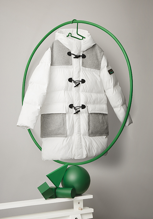 방수 나일론과 바이오 폴리에스터로 만든 오버사이즈 다운 재킷의 롱 버전으로, 깨끗한 화이트 컬러에 매치한 그레이 컬러 포인트와 버튼 디테일이 매력적이다. 어느 의상에나 스타일리시하게 매치할 수 있으며, 긴 길이와 부피에 비해 깃털처럼 가벼운 것이 특징. 보온성이 뛰어나 올겨울 꼭 필요한 아이템이다. 2백9만5천원.