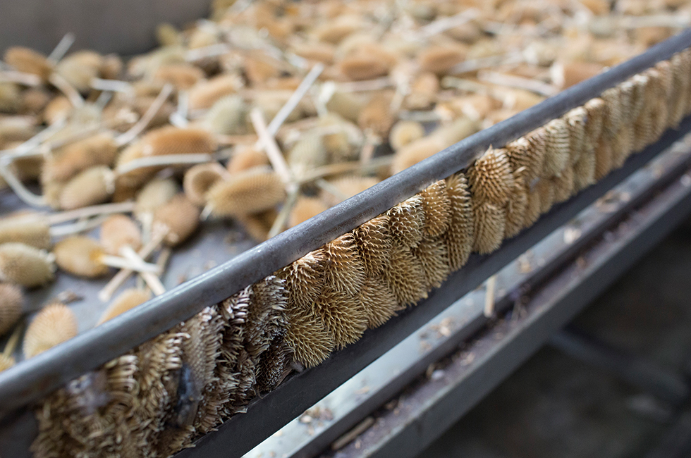 5 패브릭 고유의 느낌을 고스란히 살리기 위해 지금까지 고전적인 방법대로 카르도 열매로 패브릭의 잔털을 일으켜 기모를 만들어낸다.