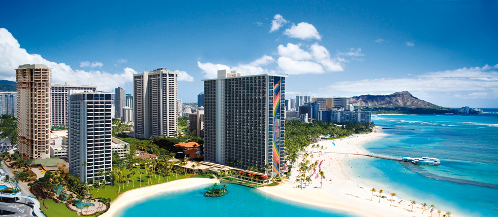 ‘하와이’라고 하면 흔히 연상되는 단어는 ‘와이키키 비치’일 것이다. 비키니와 선글라스 차림으로 해변의 백사장에서 일광욕을 즐기는 남녀들과 파도타기에 푹 빠진 서퍼들. 해변의 한쪽 끝자락에 위치해 상대적으로 덜 붐비는 느낌이 드는 힐튼 하와이언 빌리지는 전 세계 고급 호텔 중 10위 안에 드는 대형 리조트다. 22에이커의 단지에 7개의 타워가 들어서 있는데, 그 안에 하와이의 또 다른 타임셰어 리조트인 그랜드 와이키키안(Grand Waikikian)이 둥지를 틀고 있다. 수평의 들판에 펼쳐진 듯한 느낌의 킹스랜드와 대조적으로 38층짜리 건물에서 창문으로 푸른 해변을 바라볼 수 있는 건 분명 다른 종류의 호사스러움이다. 부지 내에는 열대식 정원과 폭포, 5개의 수영장, 90개가 넘는 상점이 진을 치고 있다. 도보로 시내 중심가로 쇼핑하러 갈 수도 있다.
