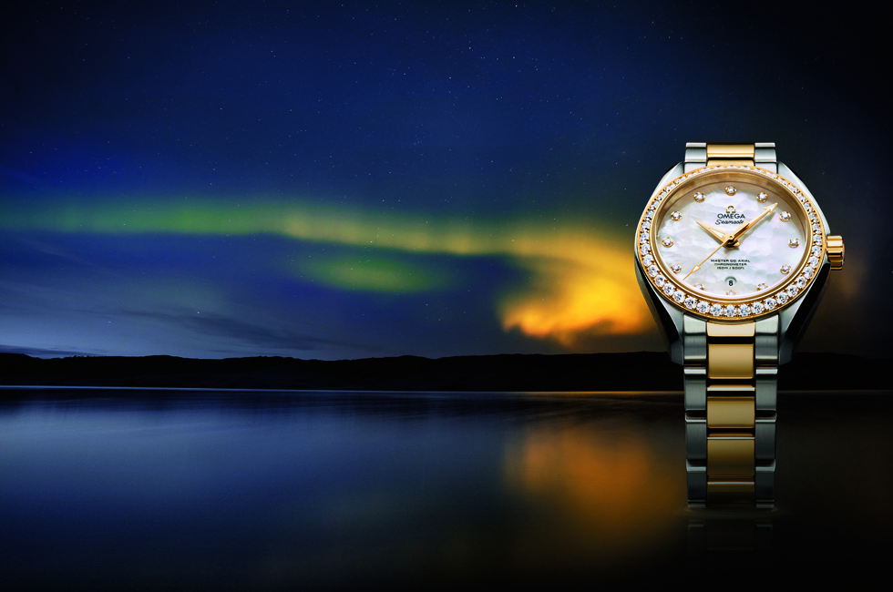 오른쪽 블랙 다이얼에 스틸을 매치한 워치는 올해 새로운 얼굴로 태어난 오메가의 ‘씨마스터 300’. 1957년 첫선을 보인, 한 방향으로 회전하는 베젤과 다이빙 눈금, 블랙 다이얼 위 밝은 인덱스, 커다란 바늘과 숫자로 다이버를 위한 완벽한 워치를 만들었고, 그 전통은 올해 바젤월드에서 화려하게 부활했다. 올해는 골드와 팔라듐을 혼합해 완성한 블랙 세라믹 다이얼을 적용했으며 인덱스 아랫면은 에나멜을 더해 입체적인 표면으로 완성했다. 오른쪽 상단의 골드와 다이아몬드로 장식한 시계는 오메가 씨마스터 아쿠아 테라 150m 마스터 코-액시얼 워치. 티크 콘셉트의 수직 형태 인덱스가 시그너처다. 두 제품 모두 1만5천 가우스 이상의 자성에 견딜 수 있는 마스터 코-액시얼 칼리버 를 장착했으며 4년간 품질을 보증한다.