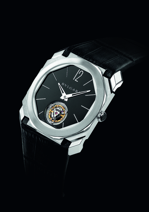 보는 이를 압도하는 종잇장처럼 얇은 비주얼이 시계 전문가로 거듭나기 위한 불가리의 노력과 투자를 보여주는 모델이다. 고도로 정교한 컴플리케이션을 장착한 1.95mm에 불과한 울트라 씬 무브먼트는 가장 얇은 두께의 플라잉 투르비용 워치로 많은 사람들을 놀라게 했다. 투르비용 케이지 두께 자체를 줄이기 위해 피봇 회전을 가능케 하는 카트리지 베어링을 장착하고 레귤레이터 조립부를 제거하는 어려운 과정을 거쳤다. 시간 조절이 밸런스 휠에서 직접 이루어지기에 무브먼트의 두께가 훨씬 얇아질 수 있었던 것. 이탈리아 브랜드의 독창성과 스위스 워치메이킹의 전문성이 만들어낸 독특한 포지션의 워치다.