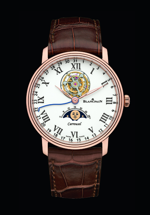 1735년 창립해 가장 오랜 역사를 자랑하는 블랑팡은 시계 기술을 예술로 이어온 탁월한 행보를 보여왔다. 올해 바젤에서 선보인 ‘빌레레 문페이즈 까루셀’ 역시 마찬가지. 12시 방향에 위치한 까루셀은 투르비용과 같이 중력의 영향을 상쇄하는 기능을 갖는데, 2008년 블랑팡이 1분마다 로테이션되는 세계 최초의 플라잉 까루셀을 선보이며 다시 워치메이킹 전면에 등장했다. 올해는 까루셀에 문페이즈 기능, 그랑 푀 기법을 사용한 에나멜 다이얼까지 매치해 클래식의 정수를 완성했다.