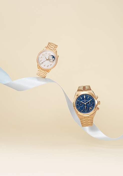에제리 문 페이즈 지름 37mm의 18K 5N 핑크 골드 케이스 가장자리에는 58개 라운드 컷 다이아몬드를 세팅하고, 다이얼 안 18K 5N 핑크 골드 소재의 링에 36개 다이아몬드를 정밀하게 세팅해 유려하고 화려한 멋을 뽐내면서도 고급스러움이 돋보인다. 총 1.10캐럿. 단아하면서도 여성스러운 멋을 더하는 머더오브펄로 제작한 구름 아래 골드 달로 장식한 문페이즈는 이 워치의 관전 포인트. 메시 타입의 핑크 골드 브레이슬릿은 피부같이 편안한 착용감을 선사하며, 1088L 칼리버로 구동한다. 오버시즈 크로노그래프 오버시즈 컬렉션의 아이코닉한 블루 래커 다이얼과 18K 5N 핑크 골드 소재의 조화가 고급스러운 느낌을 선사한다. 직경 42.5mm 케이스 안 날짜 표시창, 크로노그래프 카운터가 돋보이며, 말테 크로스 모양의 스크루로 장식한 칼럼 휠과 916/1000 골드 로터가 특징인 인하우스 셀프 와인딩 무브먼트 칼리버 5200으로 구동한다. 또 손쉽게 교체할 수 있는 브레이슬릿과 스트랩을 함께 제공해 높은 활용도가 돋보인다. 모두 가격 미정. 문의 1877-4306 |