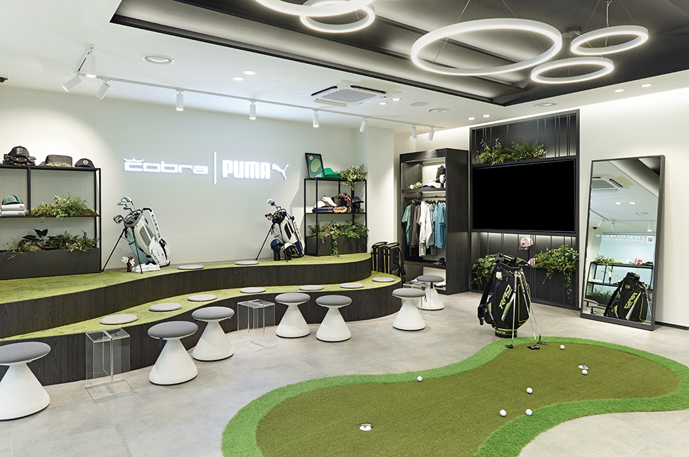 골프 클럽부터 의류, 골프화, 액세서리에 이르기까지, 다채로운 골프 관련 용품을 소개하고 올바른 사용법을 알리며, 맞춤 컨설팅 프로그램도 준비했다. 체험에 특화된 코브라 푸마 하우스 플래그십 스토어.