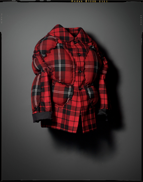 인체의 근육을 형상화한 패딩 디테일이 아방가르드한 체크 패턴 재킷. 1백만원대 꼼 데 가르송 by 꼼 데 가르송.