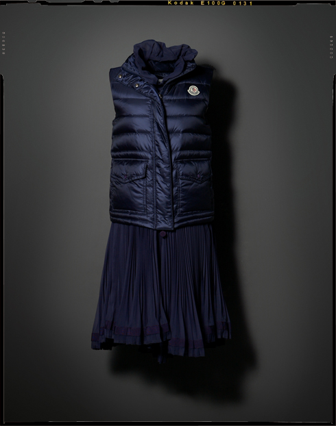 여성스러운 시스루 원피스와 캐주얼한 패딩 베스트의 조화가 멋스러운 원피스. 1백99만원 몽클레르S.