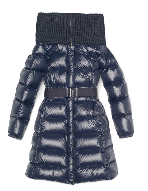 2 네크라인의 니트 장식이 모던한 패딩 코트 1백73만원 프라다.